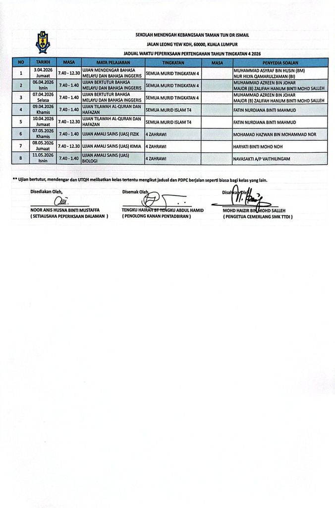 • Jadual Peperiksaan Pertengahan Tahun 2026 Tingkatan 4
