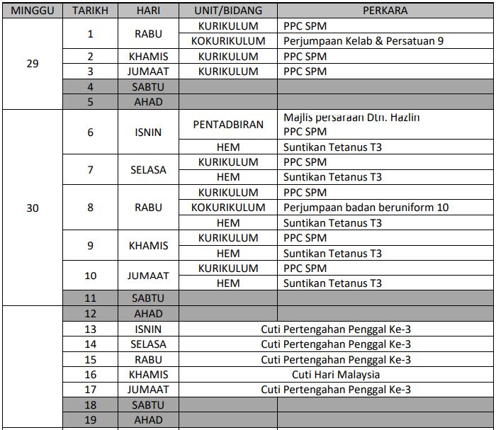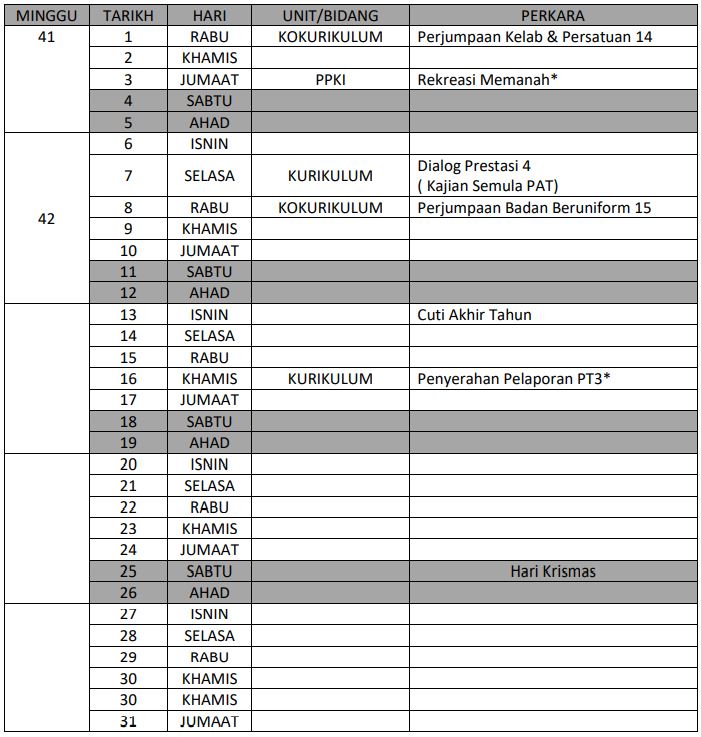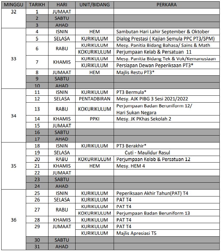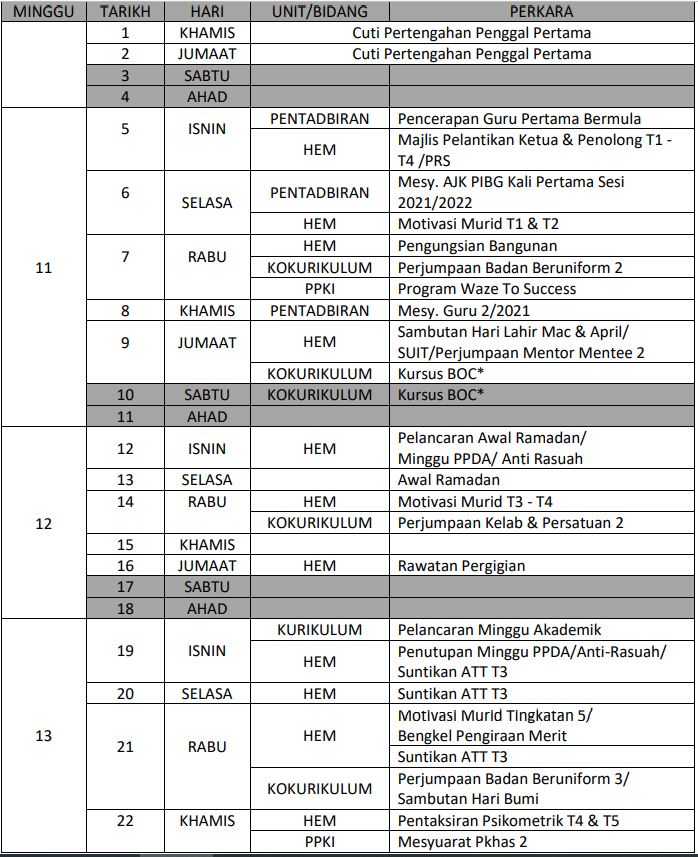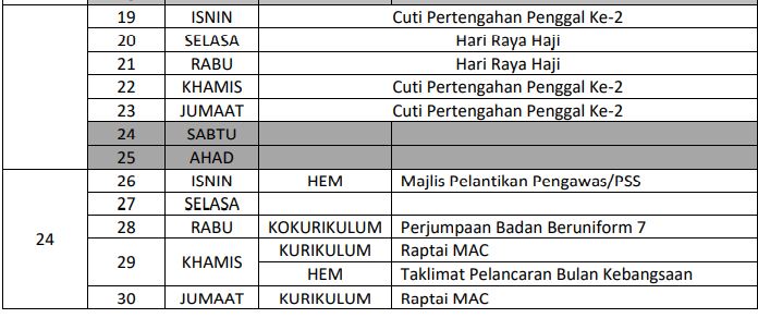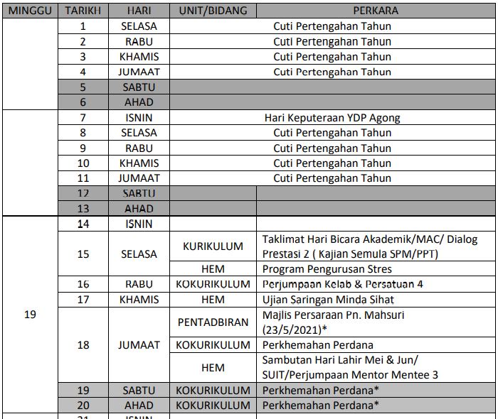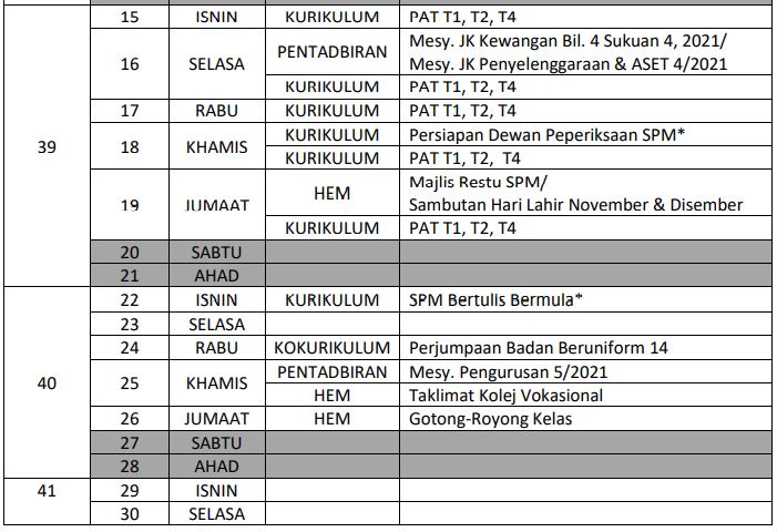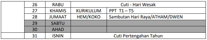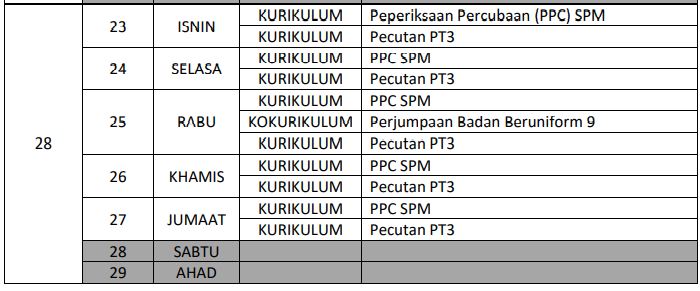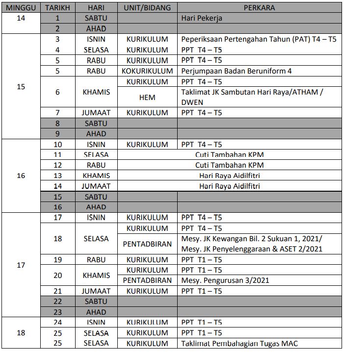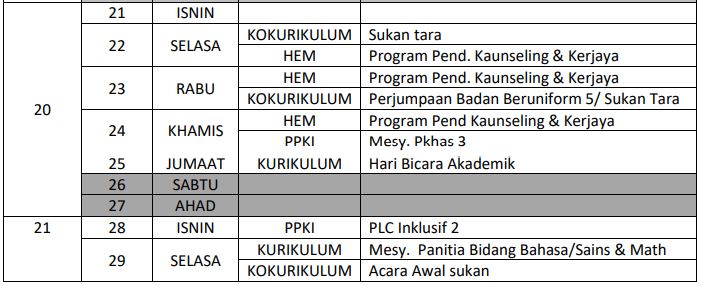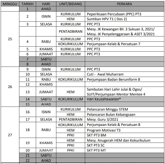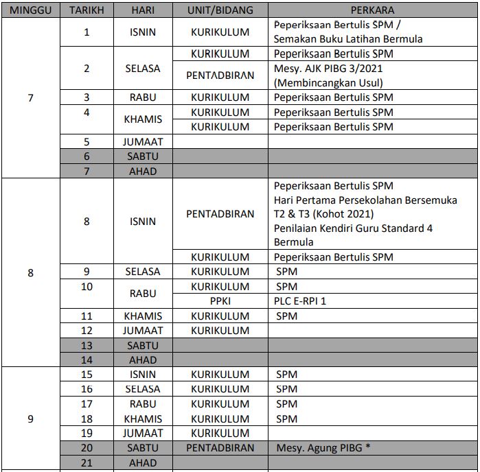 Takwim Sekolah 2021 Januari Februari Mac April Mei Jun Julai Ogos September Oktober November Disember